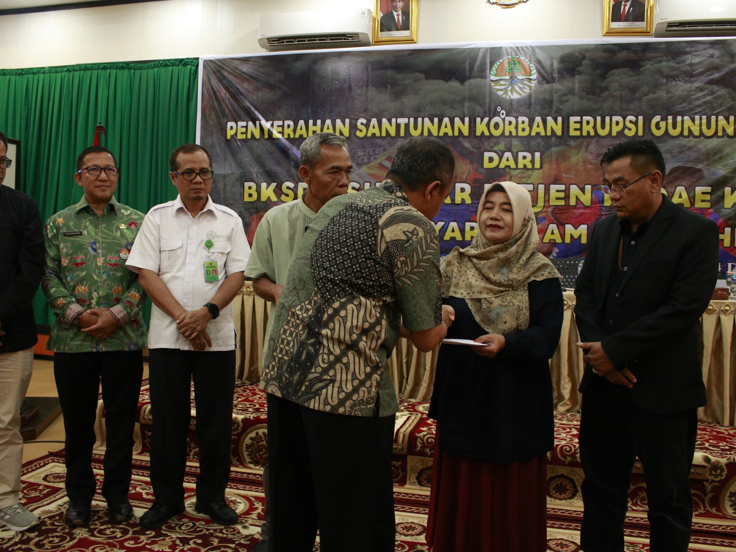 BALAI KSDA SUMATERA BARAT DITJEN KSDAE KEMENTERIAN LHK DAN ASURANSI MEMBERIKAN SANTUNAN KORBAN ERUPSI MARAPI