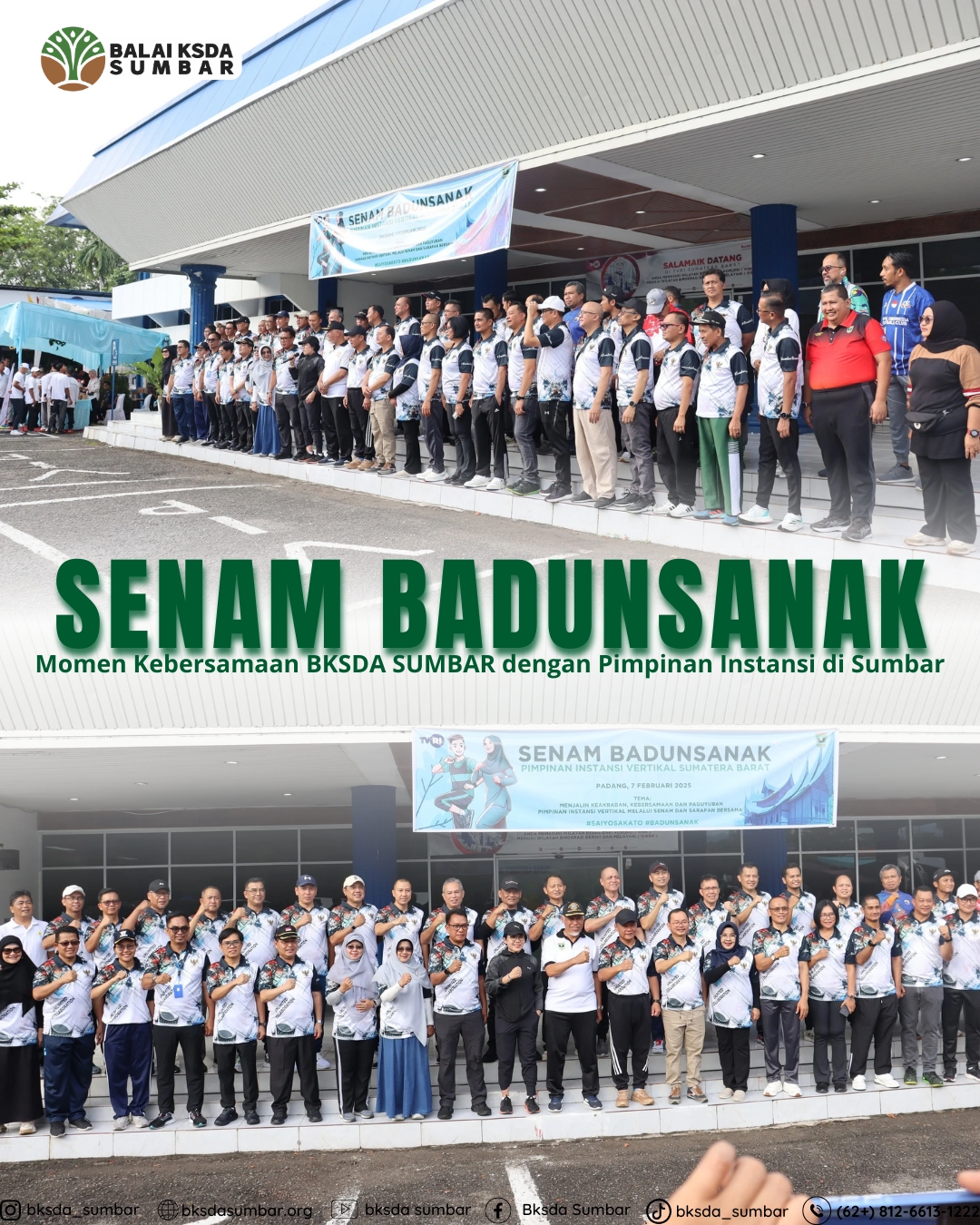 Ratusan pimpinan instansi vertikal di Sumatera Barat, termasuk perwakilan dari Balai KSDA Sumbar, mengikuti Senam Badunsanak yang digelar di halaman LPP TVRI Sumatera Barat, Jumat (7/2) pagi.