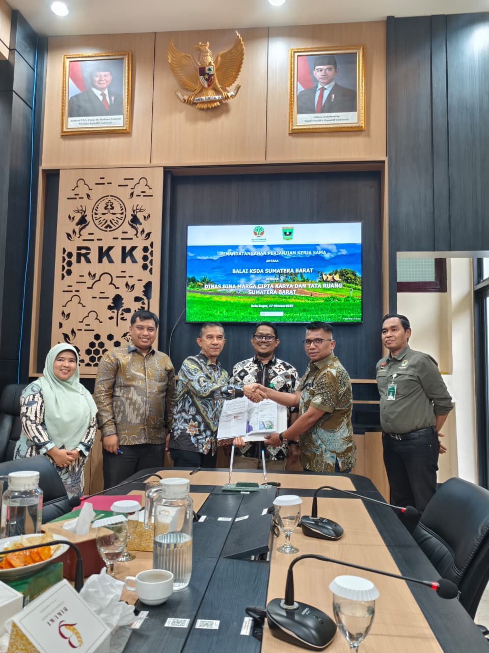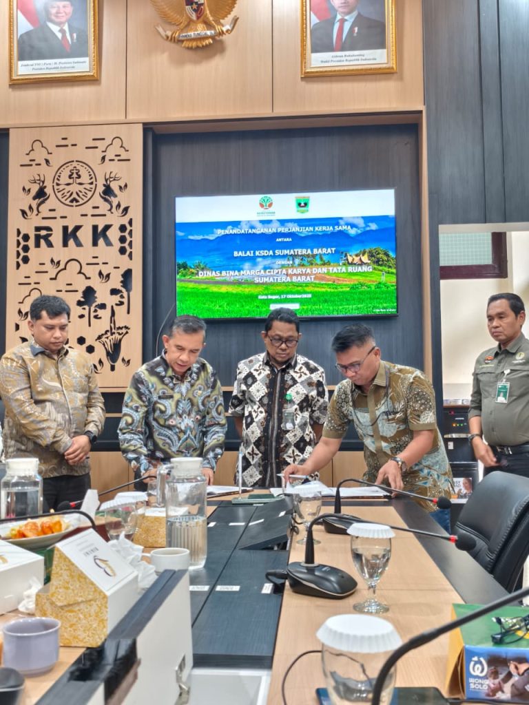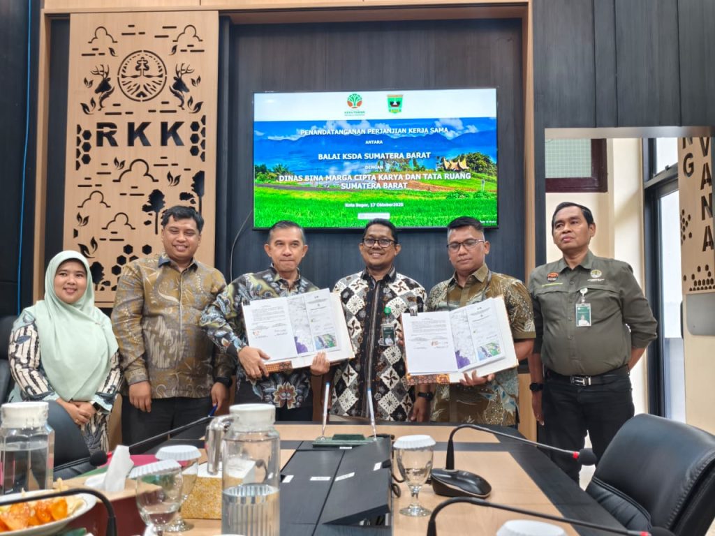 Pada hari ini, Jumat, 17 Oktober 2025, telah ditandatangani Perjanjian Kerja Sama (PKS) antara Balai Konservasi Sumber Daya Alam (KSDA) Sumatera Barat dengan Dinas Bina Marga, Cipta Karya, dan Tata Ruang (BMCKTR) Provinsi Sumatera Barat. Penandatanganan ini berlangsung di ruang rapat Savana, Direktorat Perencanaan Konservasi, Kota Bogor.