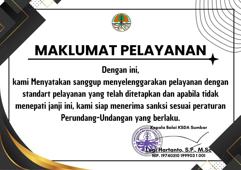 Link PDF Silahkan di Download : https://bksdasumbar.org/wp-content/uploads/2025/10/Standar-Pelayanan-Perizinan-BKSDA-Sumbar.pdf